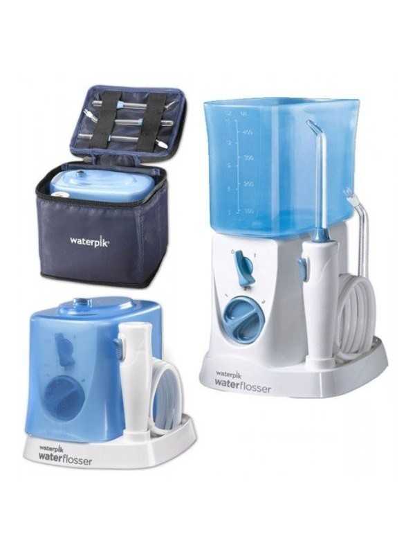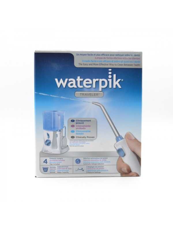 Waterpik WaterFlosser Traveler es un irrigador dental compacto ideal para llevar de viaje. Técnicamente dispone de regulador de presión y 4 boquillas de limpieza especial de serie (incluida 1 para implantes y brackets) y un depósito con autonomía que cumplirá su función y puedas mantener una boca (dientes y encías) sana y fresca.