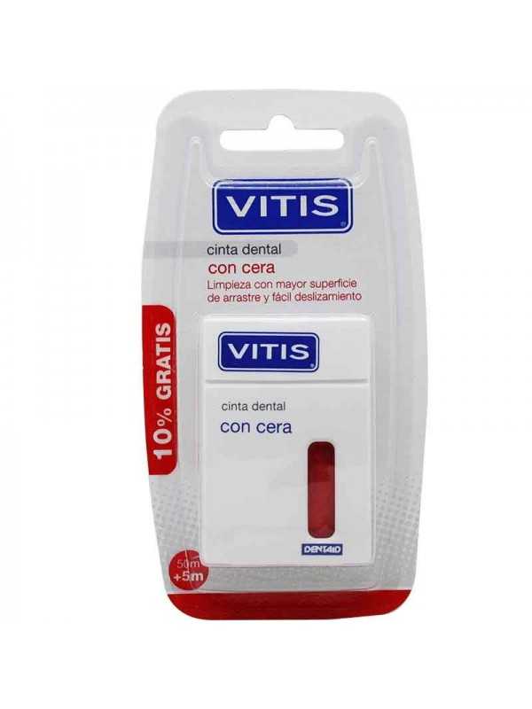 Modo de empleo: Sujetar firmemente un trozo de unos 40-50 cm VITIS® cinta dental con cera entre los dedos índice y medio de cada mano dejando libres unos 2-3 cm en medio. Introducir la seda dental entre los dientes con un suave movimiento de sierra. Cuando la seda llegue al borde de las encías, curvarla contra uno de los dientes y deslizarla suavemente en el espacio entre la encía y el diente hasta que se note resistencia (no aplicar nunca violentamente).