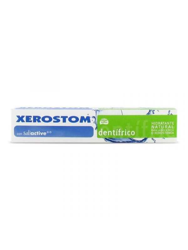 Xerostom Dentífrico Boca Seca 50ml es una pasta dental que gracias a su formulación con xilitol y betaína consigue potenciar la producción de saliva, evitando que la boca se seque. Reduce las molestias orales (dificultad para tragar, hablar, saborear, comer, etc...) asociadas a la sequedad bucal. Además, evita la aparición de caries y de sarro, a la vez que combate la halitosis.