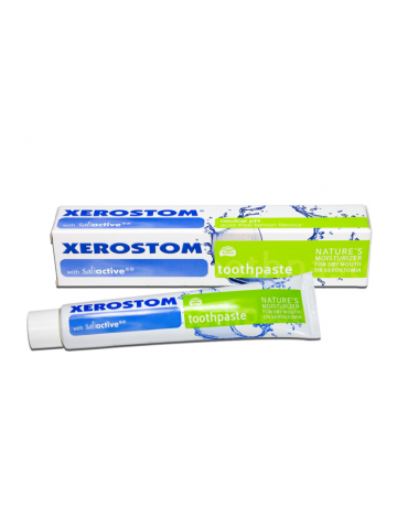 Pasta dentífrica que ayuda a reducir la sequedad bucal. Humedece la boca y favorece la salivación. No irrita las encías.