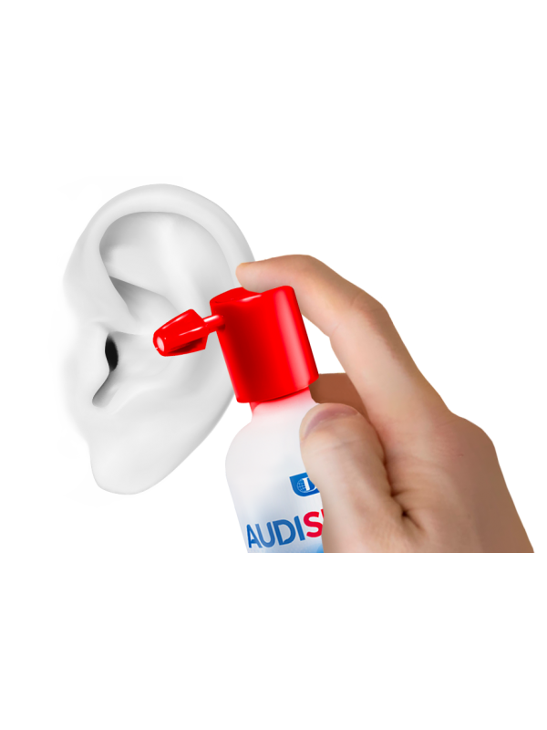 La solución de tratamiento Audispray Ultra disocia el tapón de cerumen en un primer momento y disuelve sus fragmentos en un segundo paso. Es un spray que se puede utilizar a partir de los 3 años.