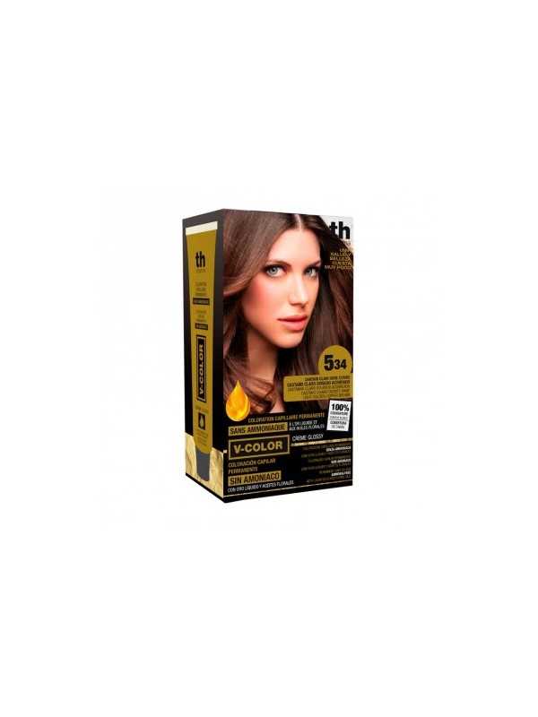 Coloración capilar permanente natural antiedad sin amoníaco, parafinas, PPD, aceites minerales, parabenos, siliconas. Con bisabolol, aceite de aguacate, cera de arroz, candelilla y jojoba. Color Castaño Claro Dorado Acobrado