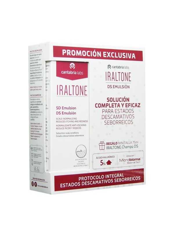 -Iraltone Champú DS minitalla 75 ml. Reduce la caspa, alivia el picor y la irritación del cuero cabelludo, además hidrata en profundidad y deja sensación de confort, suavidad y aspecto saludable del cabello. Este champú es de uso frecuente. Aplicar sobre el cabello húmedo, masajear y dejar actuar 2-3 minutos, aclarar con abundante agua y repetir la operación si es necesario.