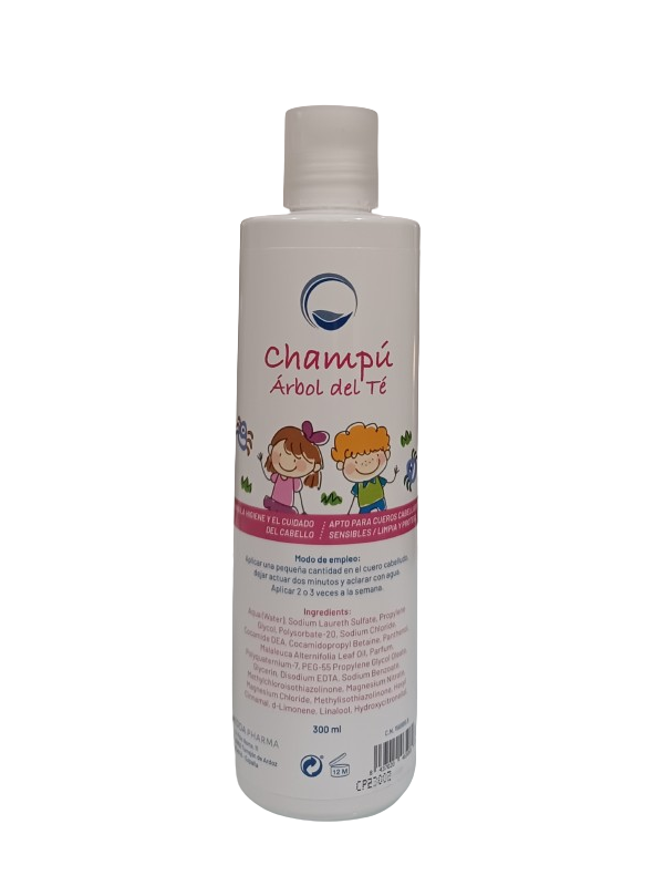 Champu Preventivo Antipiojos Aceite Arbol 300 ml. Contiene aceite de árbol del té, es un champú que posee un efecto antiséptico triple, ya que actúa contra bacterias, hongos y virus.