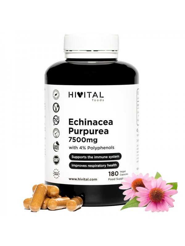 LA MEJOR EQUINÁCEA: Cada cápsula contiene 7500 mg de Equinácea, elaborada a partir de 750 mg de extracto natural de raíz de Echinacea Purpurea 10:1 certificado al 4% en Polifenoles.