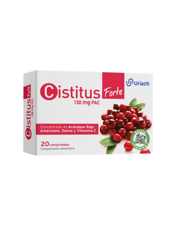 Cistitus Forte es la combinación de Arándano Rojo Americano, Salvia officinalis L. y Vitamina C, que ayuda a aliviar dichas molestias. Además, el extracto de Salvia officinalis L. (Ursolia®) es rico en ácido ursólico y la Vitamina C contribuye al funcionamiento normal del sistema inmunitario.