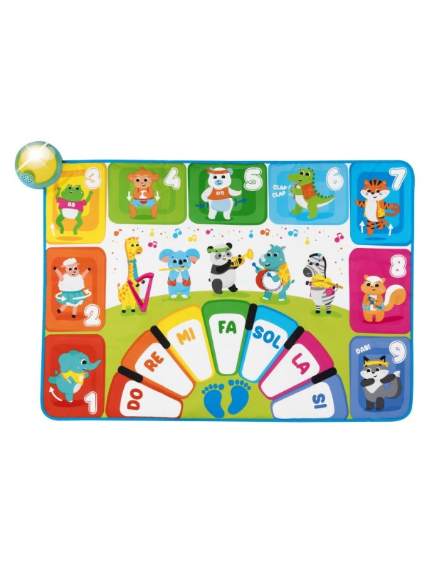 2 modos de juego: el primero es el modo de descubrimiento libre y permite a los más pequeños jugar libremente con la alfombra de juegos para descubrir notas musicales, sonidos de animales, instrumentos y colores.