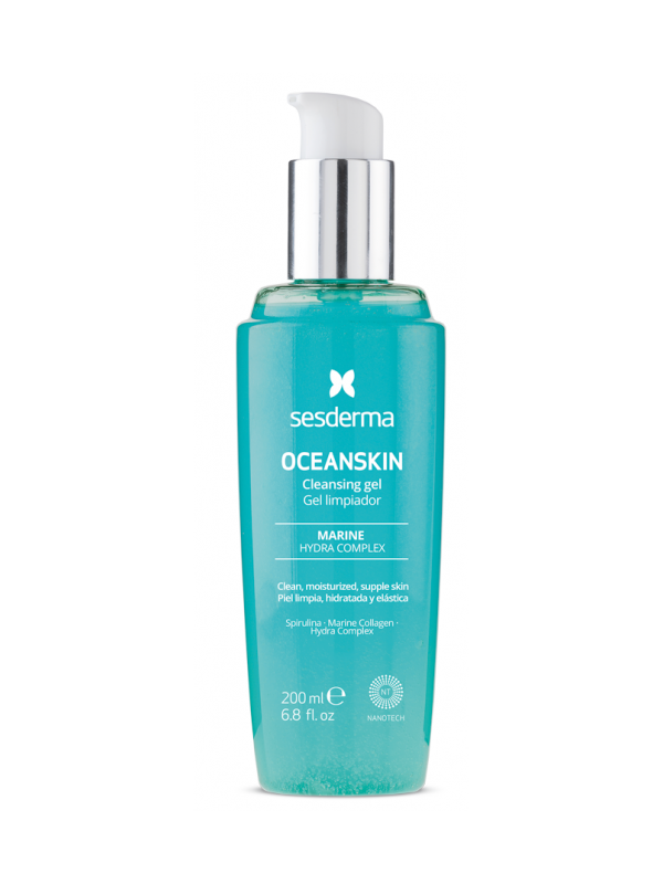 Sesderma Oceanskin es un gel limpiador que gracias a su triple fórmula combina limpieza, desmaquillado y cuidado de la piel en un solo gesto,