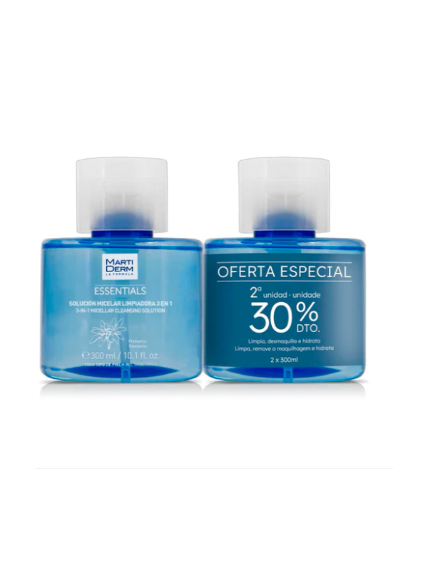 Martiderm Essentials Solución Limpiadora Micelar 3en1 es un producto limpiador de uso diario, en formato de solución micelar, que limpia y elimina las impurezas y restos de maquillaje de forma suave y sin resecar, dejando la piel limpia e hidratada.