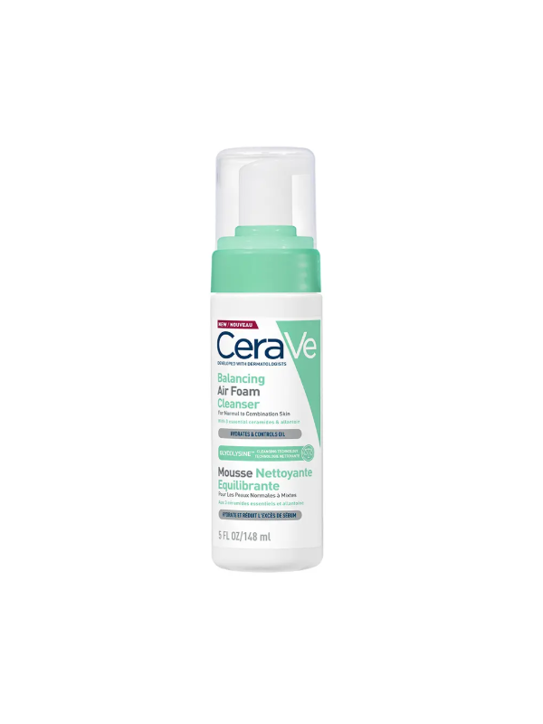 El Limpiador Air Foam Reequilibrante de CeraVe, con 3 Ceramidas Esenciales y Tecnología Glycolysine, limpia de forma potente pero respetuosa, reequilibrando la piel y eliminando el exceso de sebo, suciedad, maquillaje e impurezas, al tiempo que mantiene la hidratación. Proporciona 24H de Hidratación y 8H Oil Control para una barrera cutánea con un aspecto más saludable.