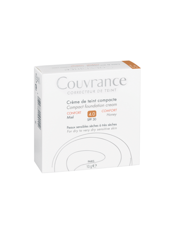 La Crema compacta confort Couvrance Miel unifica las pieles sensibles claras a doradas y cubre eficazmente las imperfecciones severas de la piel. Gracias a su textura sedosa y agradable, la crema con color aporta un tono de piel perfecto durante todo el día, sin sensación de tirantez.