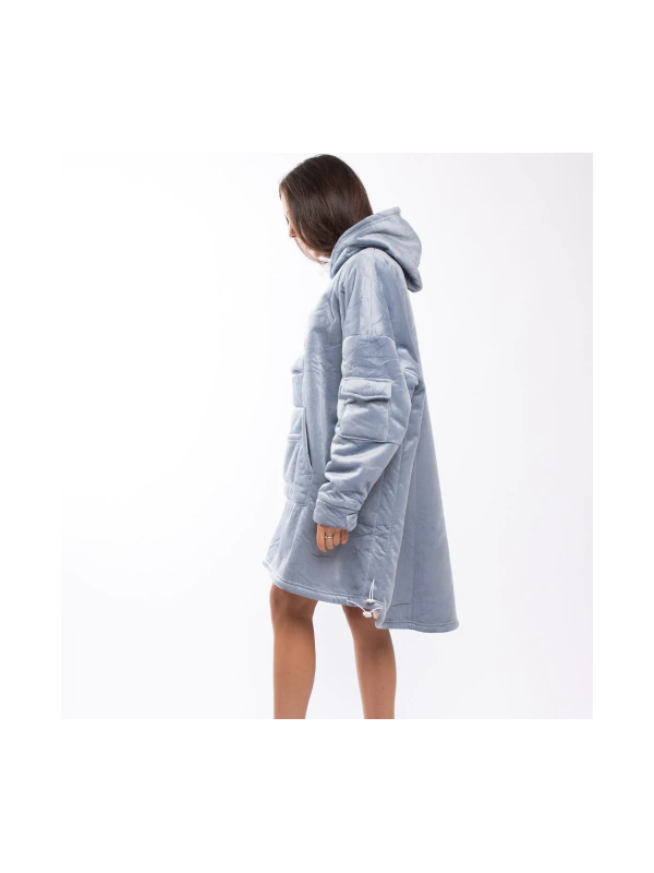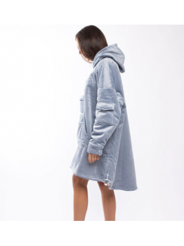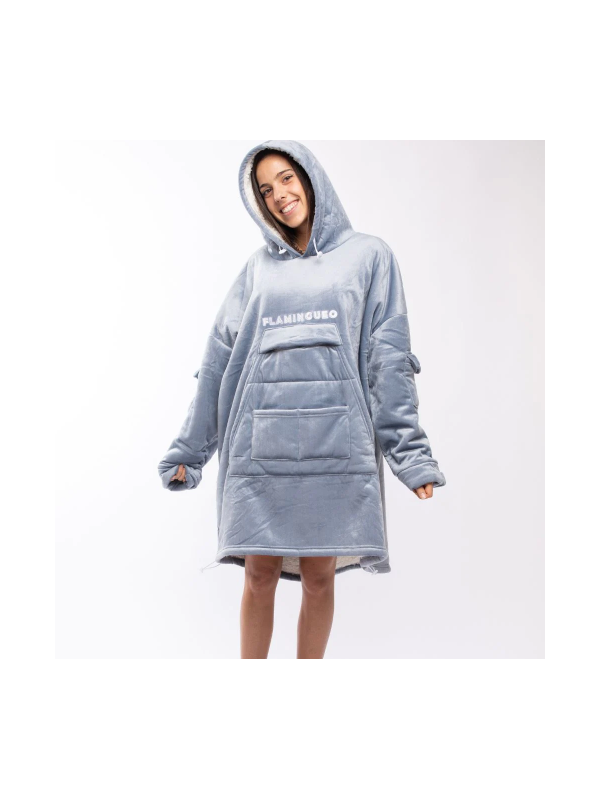 Es una combinación de manta y sudadera muuuy oversize con muchos bolsillos para guardar cosas como el móvil y el mando de la tele. Ahora no perderás nada.