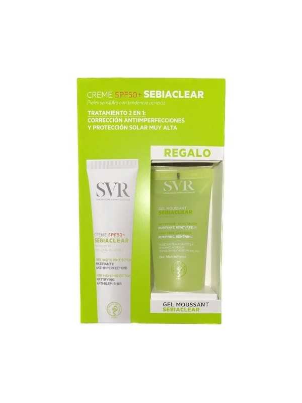 Pack que incluye SVR crema spf50+ sebiaclear con SVR gel moussant sebiaclear de regalo