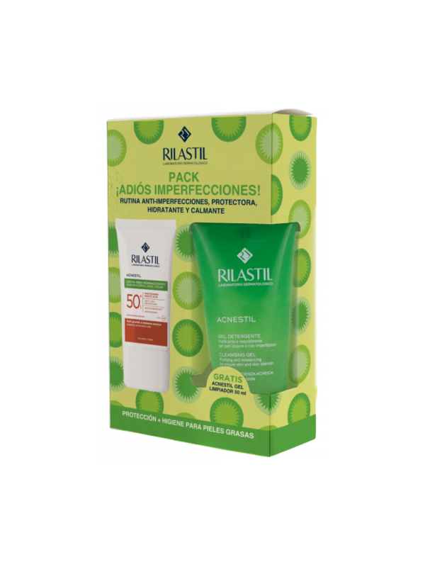 Pack Sun System Acnestil SPF50+, 40 ml + Acnestil Gel, 50 ml de Regalo. - Rilastil.