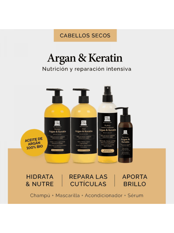 SOIVRE ARGAN Y KERATINA RUTINA CAPILAR COMPLETA 4 PRODUCTOS + 2 PRODUCTOS EN FORMATO VIAJE