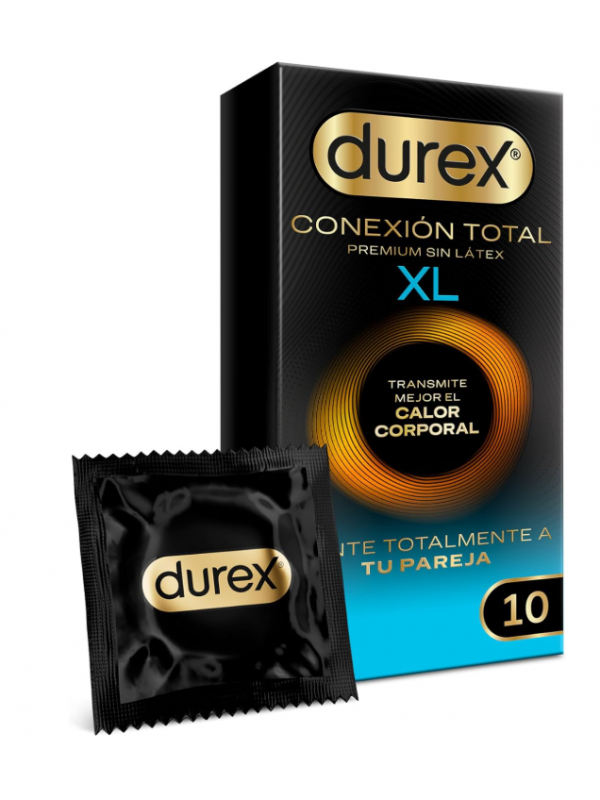 Durex Conexión Total XL Preservativo Ultra Fino Plus sin Látex con Tecnología Body Feel que Transmite Mejor el Calor Corporal, 10 Condones XL.