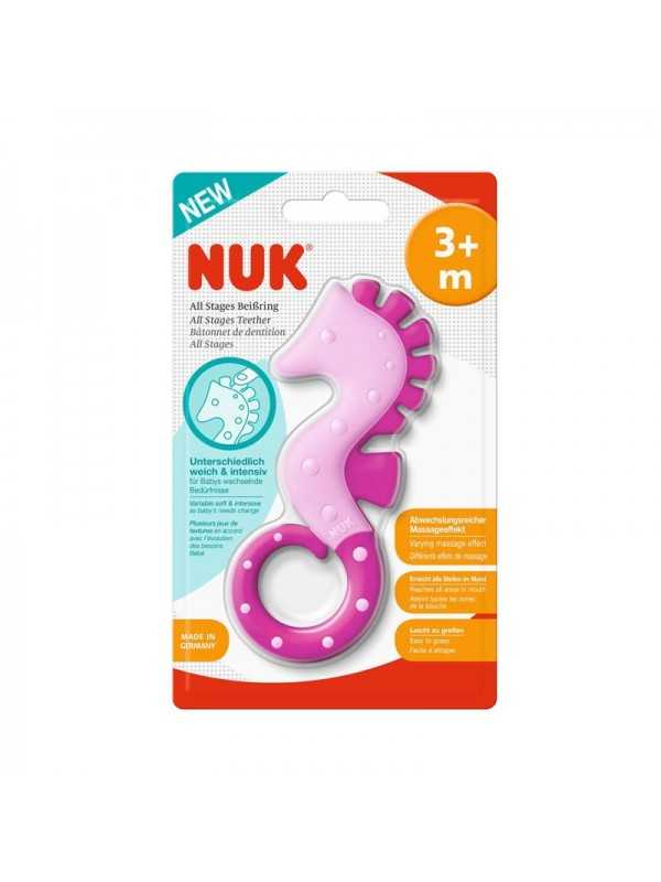 El mordedor NUK multietapas masajea con diferentes materiales y niveles de dureza siendo adecuado para las distintas fases de la dentición. Alcanza todas las áreas de la boca.