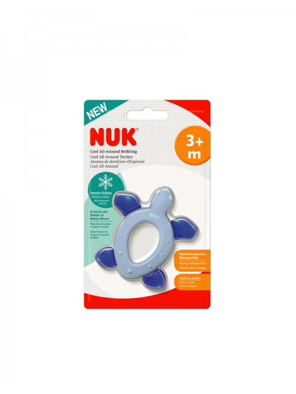 Este mordedor NUK alcanza y masajea todas las áreas de la boca del bebé con distintos niveles de dureza y distintas texturas superficiales