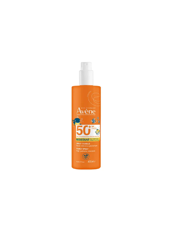 AVENE SPRAY FAMILIAR Protección UV SPF50 óptima para la piel sensible de los niños, de aplicación rápida y fácil.