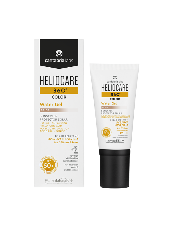 Gel fotoprotector con color beige con ácido hialurónico para todo tipo de pieles, incluso sensibles. Muy alta protección.