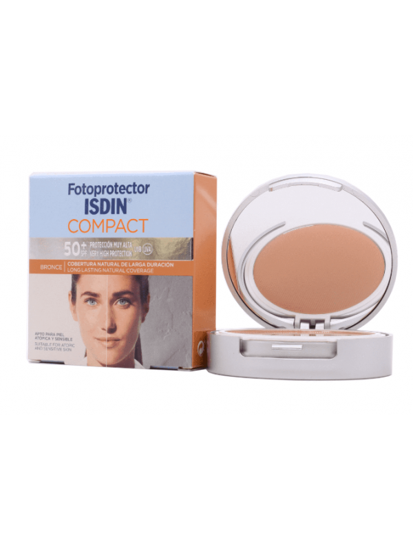 Fotoprotector compacto. Indicado para pieles sensibles al sol. Proporciona luminosidad a la piel y un acabado uniforme y mate que difumina las imperfecciones. Ayuda a prevenir manchas solares, sequedad, fragilidad y envejecimiento prematuro de la piel. Resistente al agua.