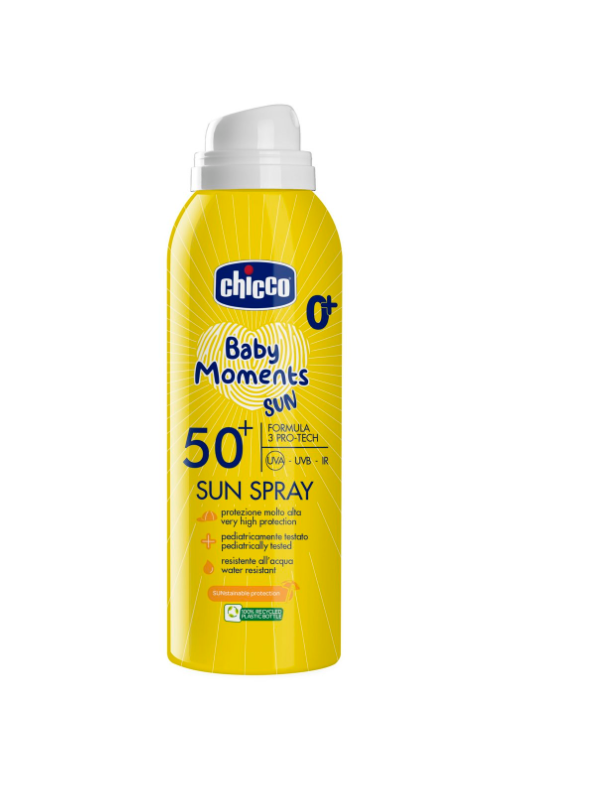 Chicco Sun Cream es un protector solar resistente al agua y con un factor de protección muy alto, adecuado para la piel sensible y delicada de los niños.