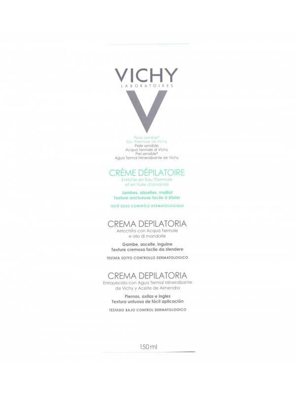 Crema depilatoria con aceite de almendra y agua termal de Vichy para un efecto calmante y revitalizante, para la depilación de las pieles más sensibles.