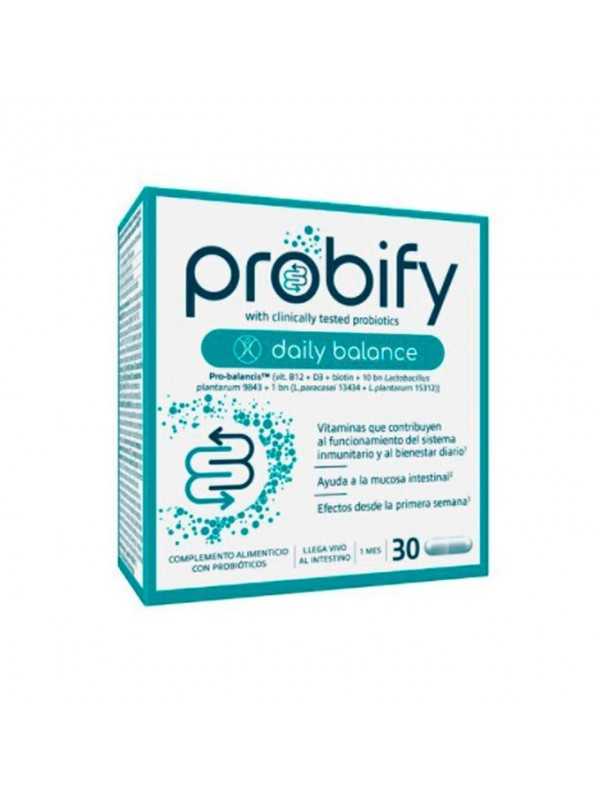 Probify Daily Balance es un complemento alimenticio para tomar una vez al día y que combina tres cepas probióticas clínicamente testadas junto con vitaminas cuidadosamente seleccionadas, para ayudar al funcionamiento del sistema inmunitario y bienestar diario.