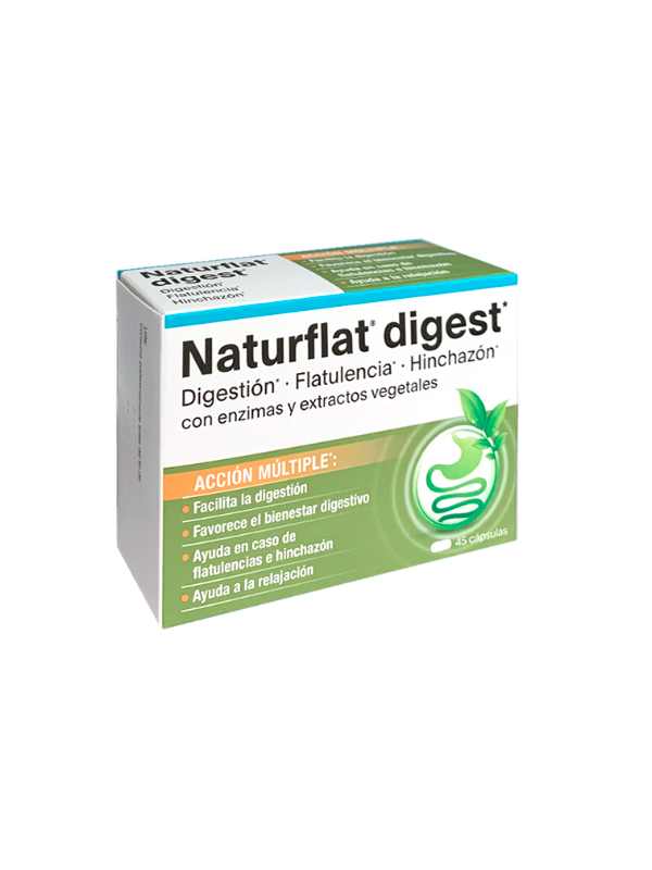 Naturflat Digest 45 cápsulas contiene 16 ingredientes naturales, incluyendo enzimas digestivas, magnesio y coenzima Q10. Estos componentes ayudan a descomponer los alimentos, facilitar la digestión, reducir el cansancio y la fatiga, y mejorar la producción de energía corporal.