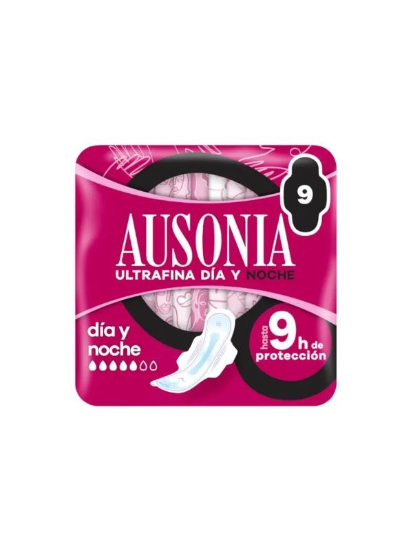 Ausonia Compresas Ultrafinas Alas Día y Noche 9 udsCompresas con alas diseñadas para protegerte hasta 9 horas. Son 30 % más largas para ofrecer una mayor protección.Discretas, cómodas y seguras.