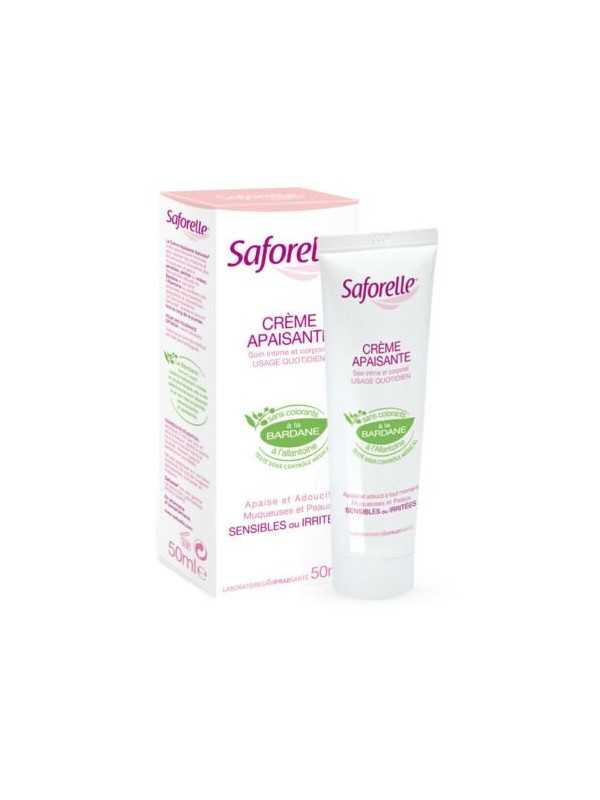La Crema Íntima Calmante Saforelle, con extracto natural de bardana y enriquecida con alantoína, calma las irritaciones y la sensación de incomodidad de las pieles sensibles frente a los problemas de sequedad, picor e irritación.