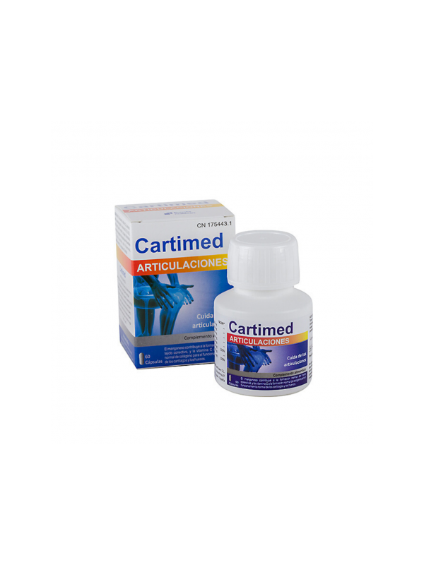 Cartimed contiene glucosamina que, conjuntamente con la condroitina, contribuyen al mantenimiento de la flexibilidad y movilidad de las articulaciones, ayuda a mantener la estructura del tejido conectivo y del cartílago. Asimismo aporta MSN (metil sulfonil metano) que mejora la movilidad y el funcionamiento de las articulaciones, conocido por sus propiedades antiinflamatorias y posibilitar la recuperación de células y tejidos dañados.
