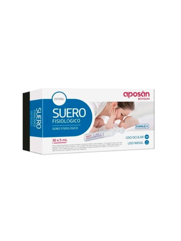 El suero fisiológico de Aposan, en formato de 30 unidades, es un elemento esencial para cualquier botiquín. Con su composición equilibrada de agua y cloruro de sodio al 0.9%, este suero es perfecto para la limpieza y el lavado de heridas, así como para la higiene nasal y ocular.