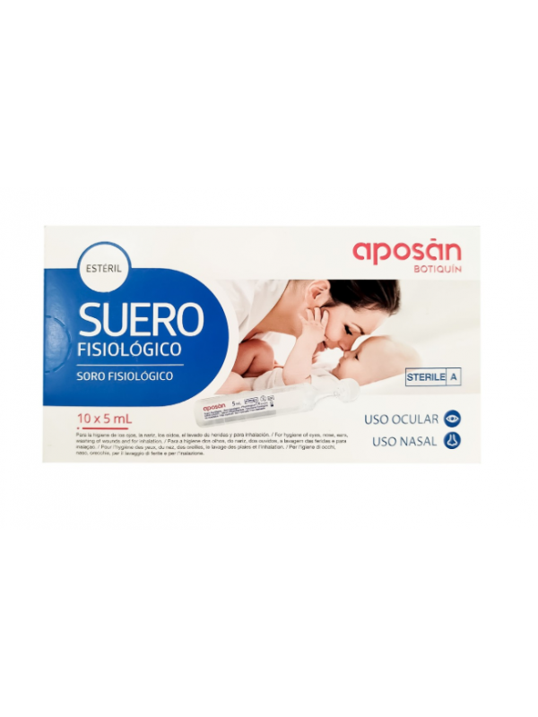Aposan Botiquín Suero Fisiológico es una solución en monodosis sin conservantes y sin agentes tamponadores la cual, actúa mediante arrastre mecánico, por lo que esta especialmente indicada en personas con ojos y fosas nasales sensibles.