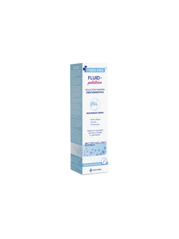 Naso Faes es una nueva línea formulada a base de un compuesto marino tecnológicamente tratado y enriquecido con oligoelementos que cuidan y ayudan a mejorar el estado de la mucosa nasal. Naso Faes Fluid+ Pediátrico para mucosidad densa está indicado para el tratamiento de rinitis alérgica, congestión, sinusitis, rinofaringitis e infección.