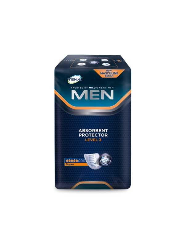 TENA Men Protector absorbente Level 3 es nuestro protector más seguro y una solución eficaz para tratar las pérdidas de orina abundantes.