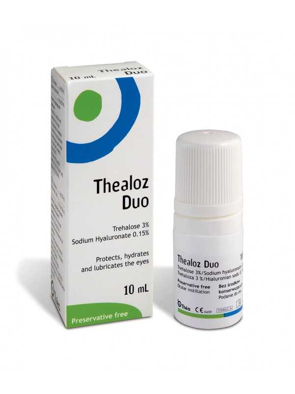 Sus ingredientes principales son la trehalosa, un disacárido presente en numerosas plantas y animales, y el hialuronato de sodio, un polisacárido presente de manera natural en el ojo. Así, y gracias a su combinación única de trehalosa e hialuronato de sodio, THEALOZ DUO proporciona protección, hidratación y lubrificación de la superficie ocular durante un largo periodo de tiempo y con un confort máximo.