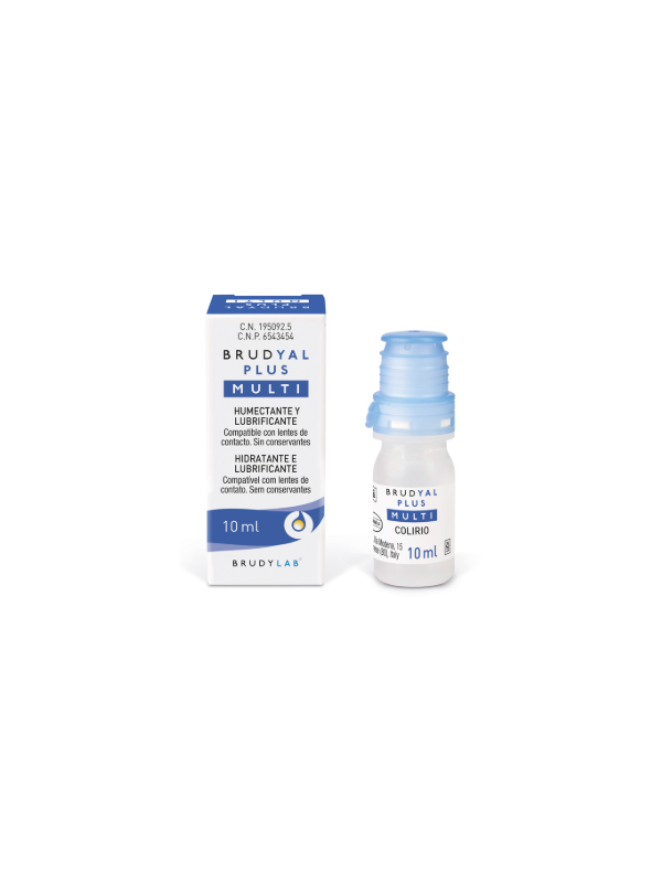 Solución humectante y lubricante ocular, estéril y con un pH fisiológico, a base de hialuronato sódico y agua destilada de aciano azul y manzanilla en envase multidoses, con capacidad nominal para 10 ml., sin conservantes.