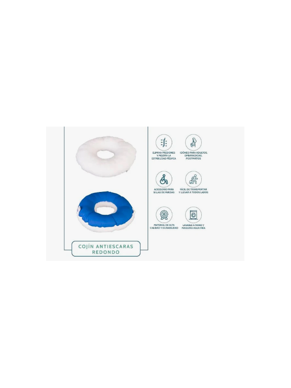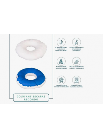 El cojín antiescaras previene la aparición de úlceras por presión gracias a su relleno de fibra de silicona y su funda exterior de algodón y poliéster