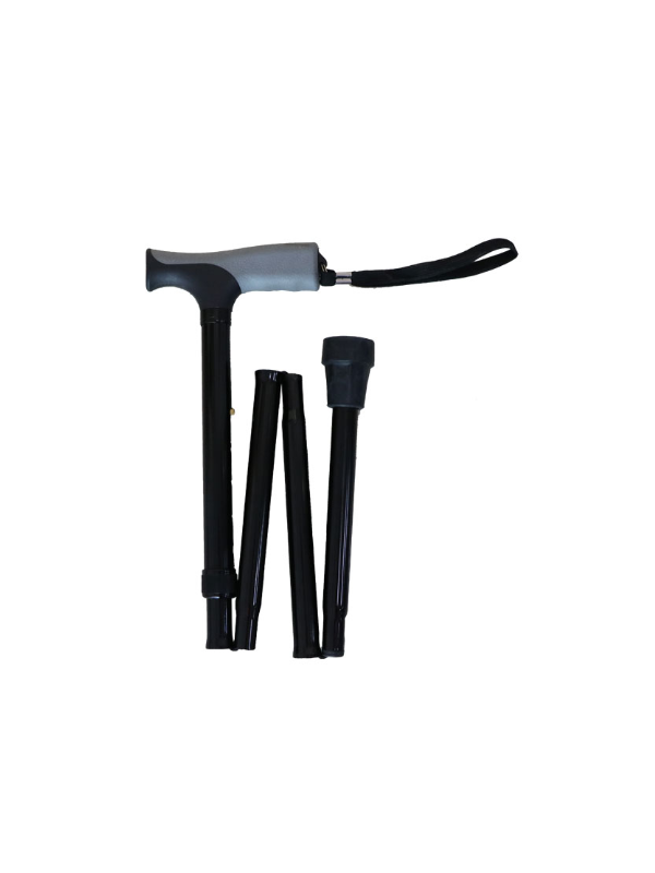 BASTÓN PLEGABLE NEGRO PUÑO BLANDO GRIS