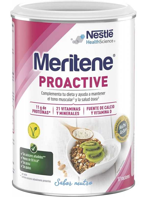 Meritene® ProActive es tu aliado nutricional ante los cambios asociados con la madurez de la mujer. Cuidar la nutrición con una vida físicamente activa es clave en este momento. Por eso, su fórmula NutriActive combina proteínas de alta calidad, minerales y vitaminas que te ayudarán a seguir tu ritmo de vida.