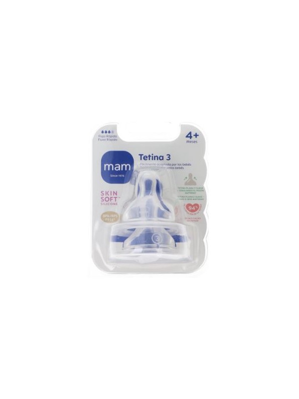 Tetina MAM de silicona de flujo rápido para bebés a partir de los 4 meses.