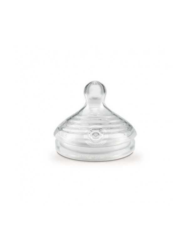 Tetina de silicona con múltiples orificios de flujo medio y anticólicos para bebés de entre 6 y 18 meses.