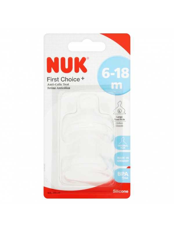 Tetina de Silicona NUK First Choice + anticólico Orificio Grande 6-18m 2 uds