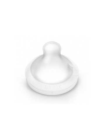 La tetina fisiológica y simétrica, más estrecha y plana en la base, permite que la tetina quede bien colocado en la boca del bebé, ejerciendo la mínima presión sobre el paladar, además, imita la forma del pezón materno durante la succión mejorando su aceptación.
