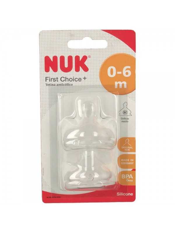 Nuk tetina de silicona con múltiples orificios, simula el pecho materno y proporciona un flujo natural y continuo como en la lactancia materna. Especialmente ancha y flexible por lo que facilita la succión, con una zona extra- suave que se adapta al paladar del bebé.