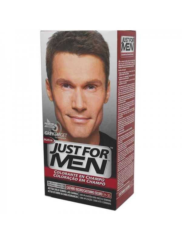 Colorante en champú para hombre con tono castaño oscuro que actúa solo sobre las canas, cubriéndolas con tonos que se igualan con tu color natural de pelo. Cubre el 100% de las canas. Se aplica de manera fácil en solo 5 minutos y dura hasta 8 semanas. La fórmula de Just For Men no contiene amoníaco. Just For Men Cubre bien las canas. Es la elección más natural para mi cabello.