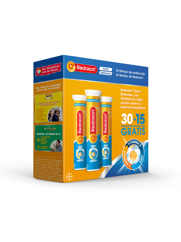 Redoxon Extra Defensas es una combinación de 1000 mg de vitamina C, 10 mg de Zinc con un extra de vitamina D (10 µg) especialmente desarrollada para ayudar al sistema inmunitario.