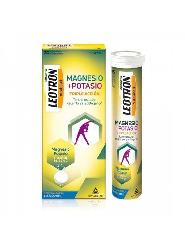 Leotrón Vitalidad Magnseio + potasio es un complejo vitamínico con magnesio y potasio. El magnesio y el potasio contribuyen al funcionamiento normal de los músculos. El magnesio contribuye a la síntesis proteica normal y al equilibrio electrolítico. La vitamina C contribuye a la formación normal de colágeno. La vitamina B6 contribuye al metabolismo normal de las proteínas. En concreto: