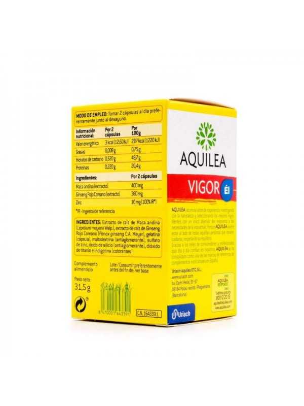 Modo de empleo: Tomar 2 cápsulas al día de Aquilea Vigor él, preferentemente junto al desayuno durante un mínimo de un mes. Se recomienda que las personas diabéticas y personas que estén tomando medicamentos antihipertensivos, antidepresivos o anticoagulantes, inicien la toma con 1 cápsula al día, y si a los 15 días no se observa ningún efecto adverso continúen con 2 cápsulas al día.